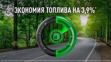 Жесткие блоки протектора во время движения не деформируются, благодаря прочной конструкции и особенностям резиносмеси. Использование современных материалов позволило создать одновременно прочный и легкий каркас шины, который также противостоит деформации. За счет такого решения инженерам удалось снизить коэффициент сопротивления качению на 15%, повысив тем самым топливную экономичность до 3,9%*.